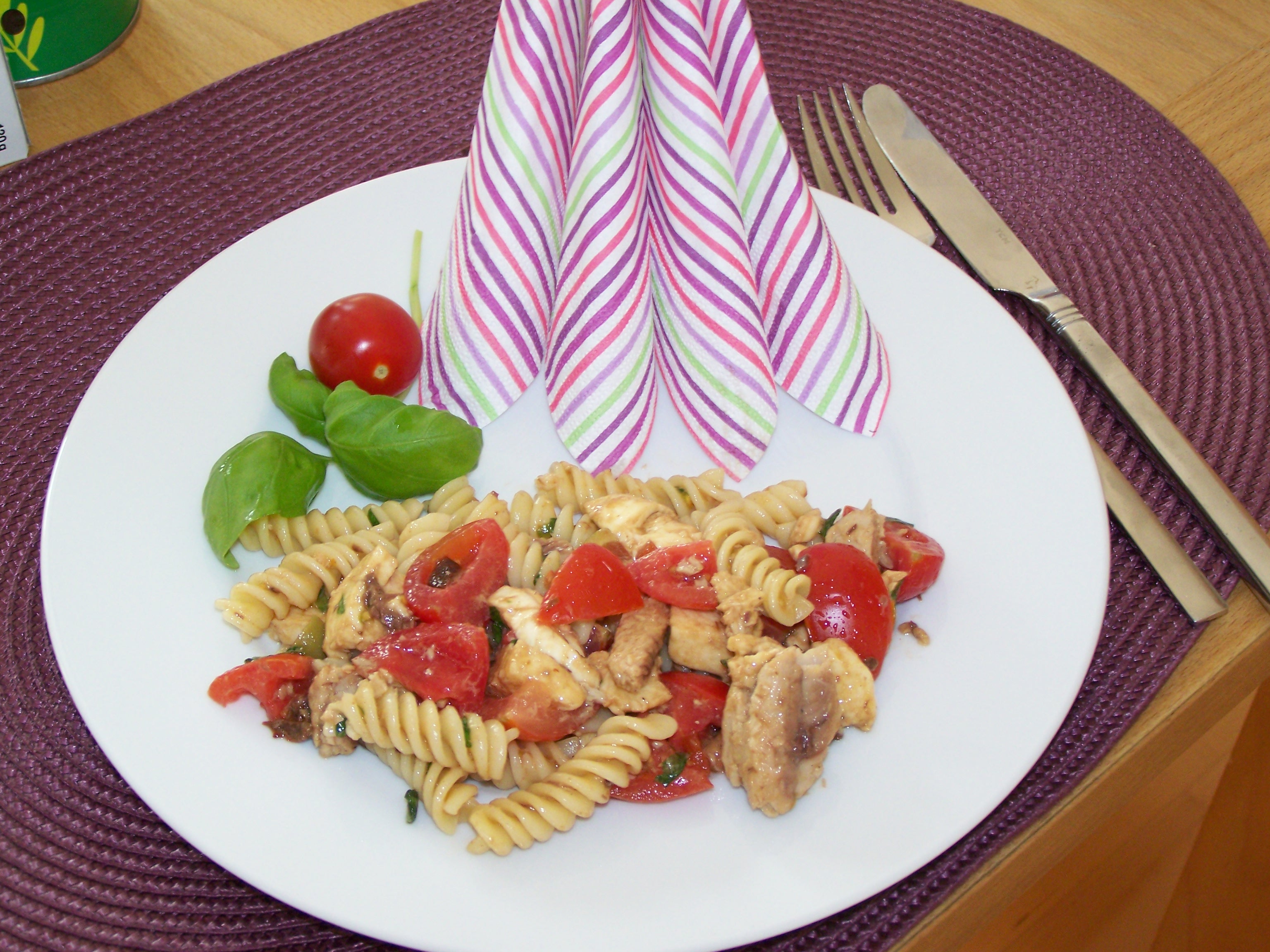Ein leckerer Nudelsalat mit Sardinen, Balsamico und feinem Olivenöl. Schnell gemacht und sehr sättigend. Schmeckt warm und kalt!