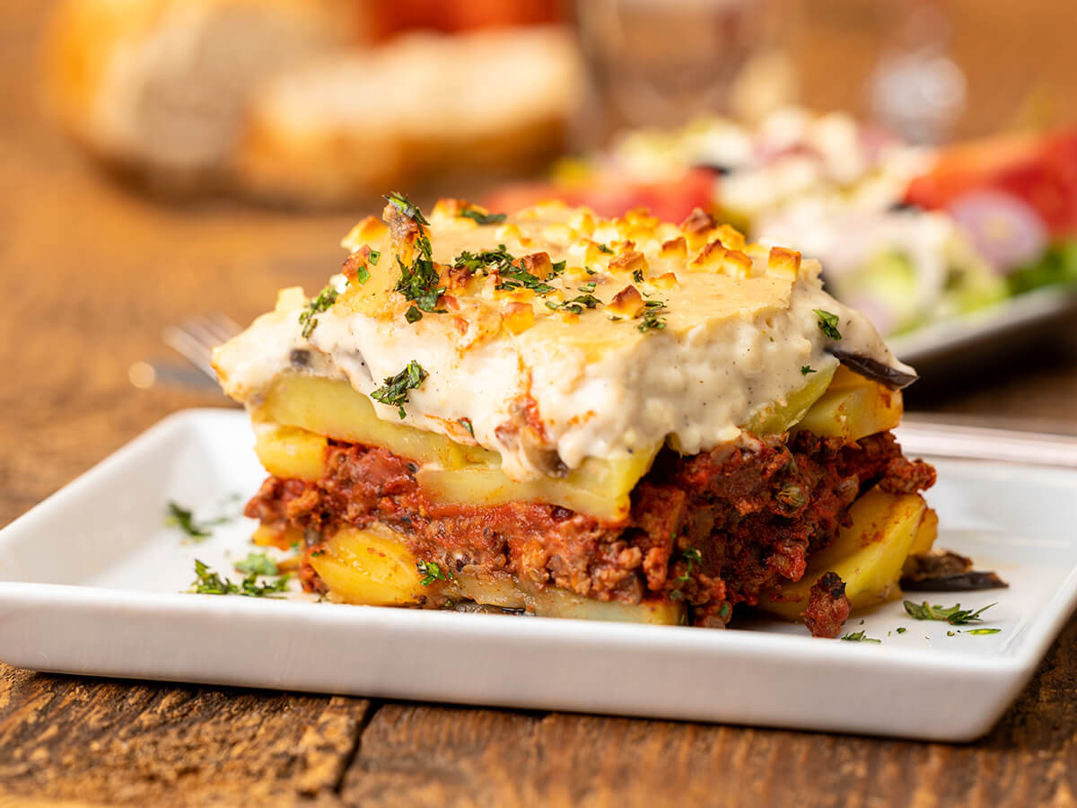 Ein wunderbarer Auflauf nach griechischer Art. Unser Moussaka kommt ganz ohne Fleisch aus. Mit dem Vegetarischen Hack schmeckt der Auflauf mindestens genauso gut.