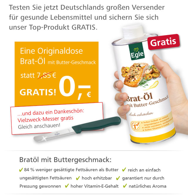 8,80 € (100% gespart)Braten mit feinem Buttergeschmack - aber ohne Butter! Das geht? Mit unserem Brat-Öl mit Buttergeschmack auf jeden Fall!