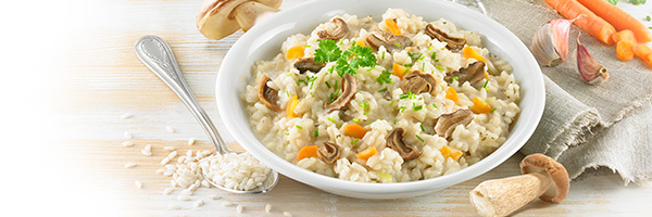 Unser Steinpilzrisotto wird mit italienischem Carnaroli-Reis zubereitet und hat einen intensiven Steinpilzgeschmack.