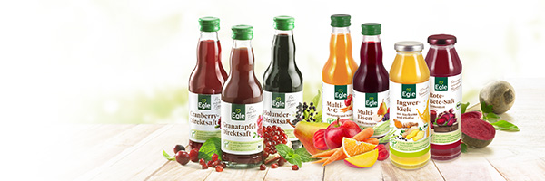 Unterschiedliche Bio-Säfte wie dem Holunder Direktsaft, dem Cranberrysaft oder dem Granatapfelsaft - da findet sich etwas für jeden Geschmack.